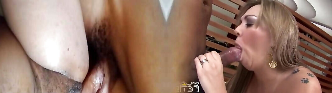 Ebony Impaler Slides In Crevices Of Red-hot Light-haired Ho