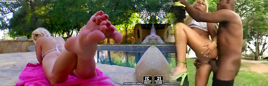 Insatiable platinum-blonde cutie figers her super-steamy poon outdoors