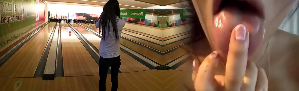 Amateur displays her hooters and gets her gash slammed inside the bowling area
