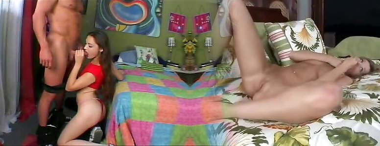 Glorious all girl porn starlets play with a man-meat shaped faux-cock