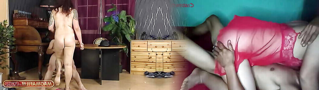 Plus-size ash-blonde mature female in red dress stripteases siral acstar gopi xxx picks a glass fake penis for masturbation