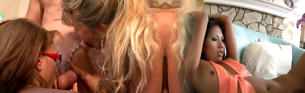 Lucky guy interrupts lesbian action to get his dick sucked