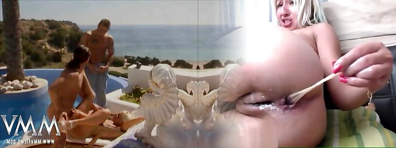 Brief blond hair Milf pulverized rigid by Two young rods