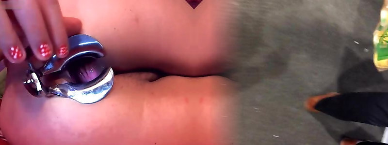 Ultra-cute cervix throug a gigantic metal butt-plug