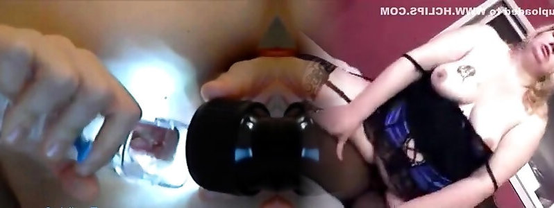 Wifey climaxes with a cork in her muff