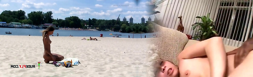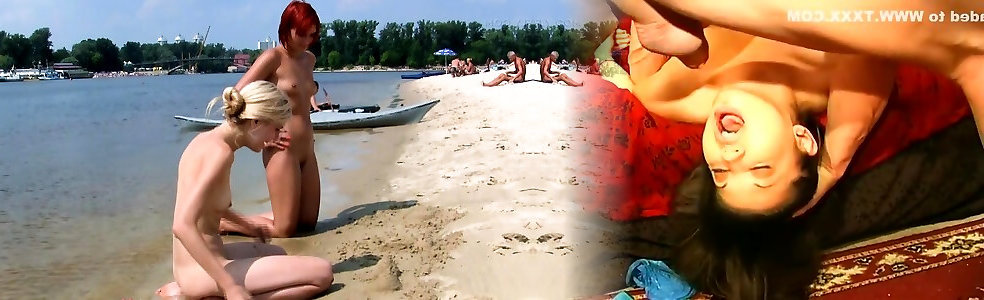 Playful brunette nudist teen caught on fucking horny gf naked at the beach