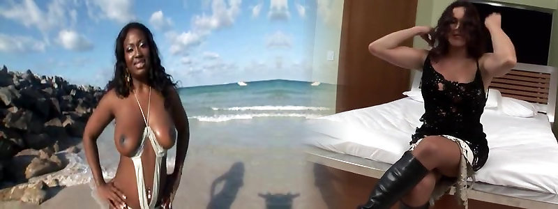 Beach change cabin ebony tube kala giving super-steamy view on fledgling udders