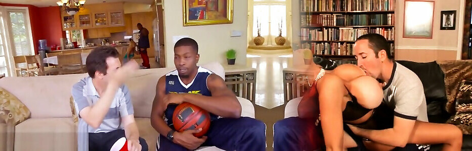 Kinky basketball players tempt warm cougar at the kitchen into super-fucking-hot 3 way