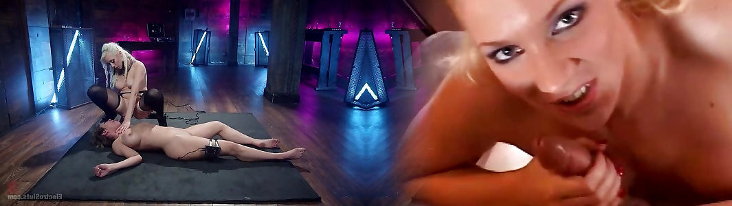 Electro dazed lesbian strapon drilled by domme