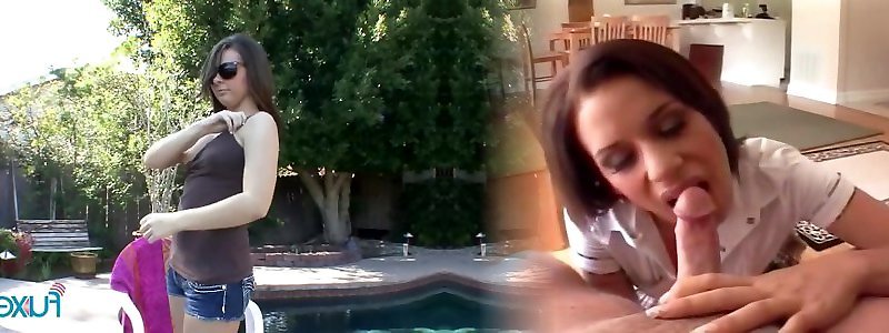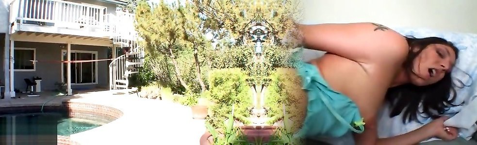 Bigtitted cutie jerking spear by the pool