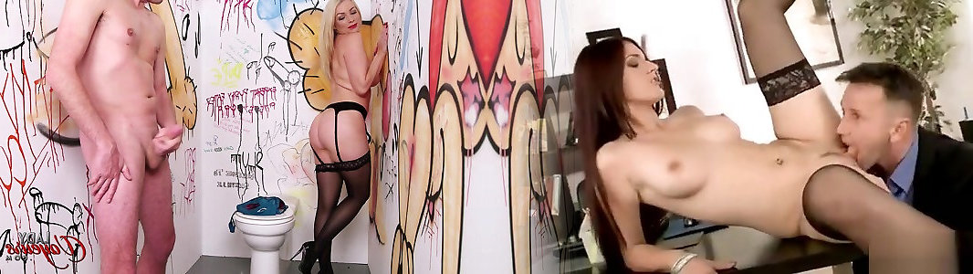 Stud Ravages A Coochie Thru Lacy Stocking On A Rest Room Floor