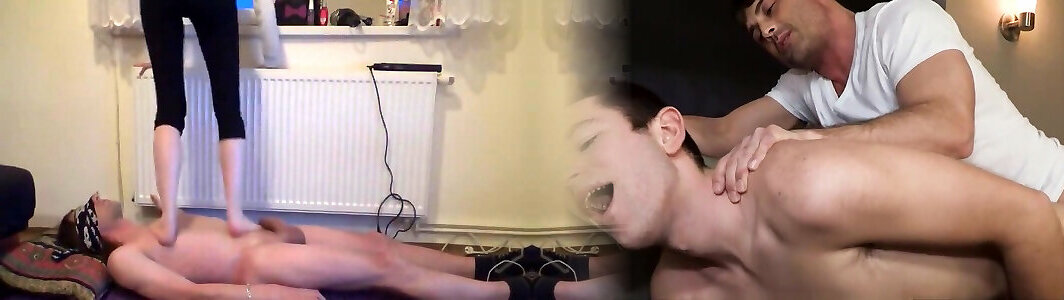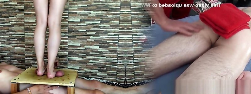 oiling the ass hole and cock of my husband and stomping his ass cheeks with my high heels in a massage
