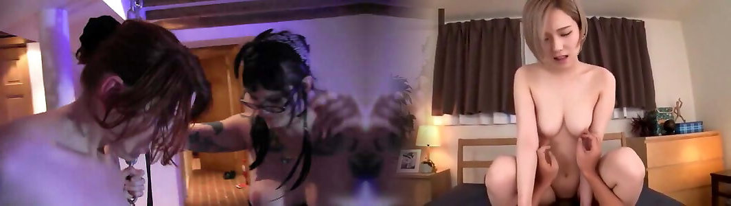 Smallish Chinese female plows a guy in a three-way with a strap-on