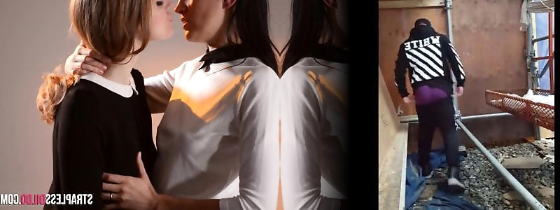 Belt Dick Girly-girl riding her lover with a cord on