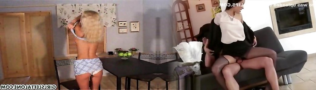 Black-haired sweetheart peels off down to her panty in littele boy fuck with mom of a web cam