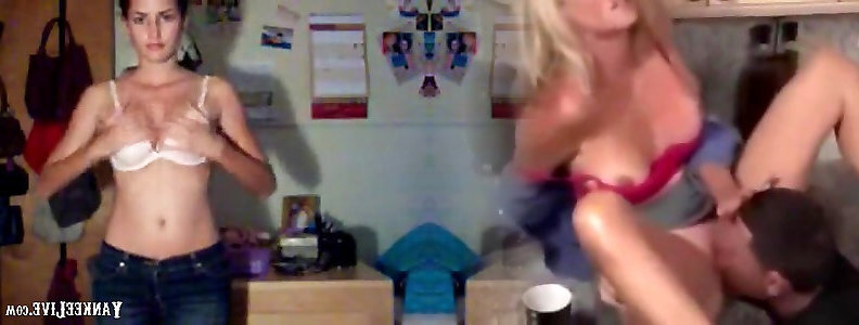 Dancing and dry fucking in jeans cut-offs, spunk in trousers, hj in couch