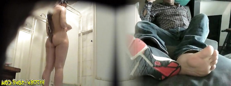 Foamed water flows pour down shower spy web cam doll