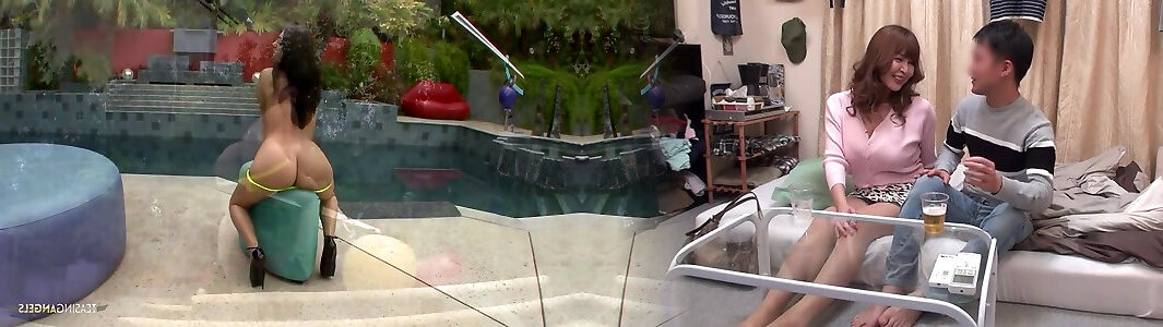 Young housewife gets kinky while lying by the pool