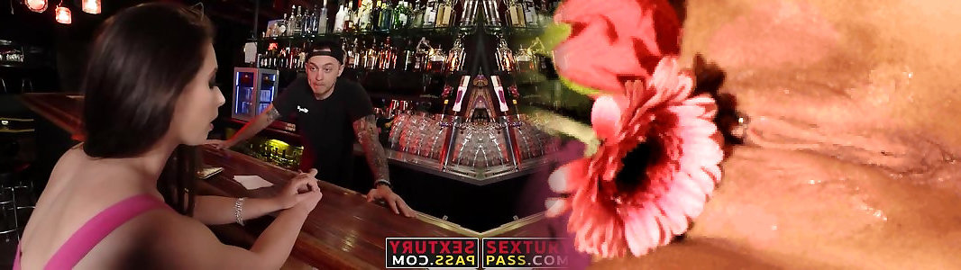 Petite babe long hair serves men drinks and blowjobs