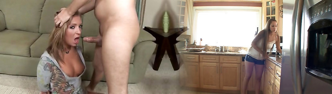 Silly towheaded whore Julie Knight sucky-sucky on douche floor