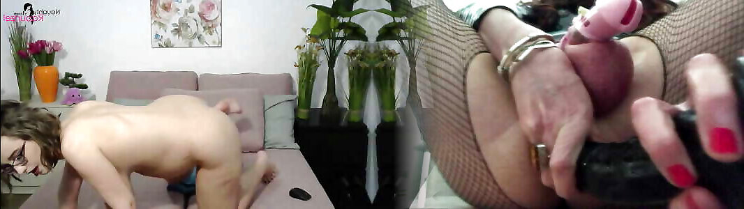 Stretching her lips while pounding