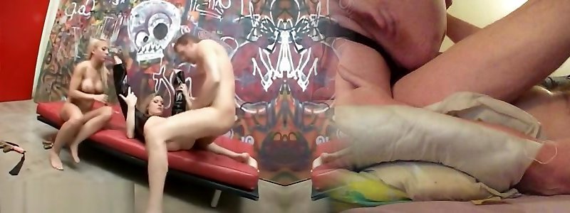 2 Sexy dolls take turns deep throating and screwing one gu...