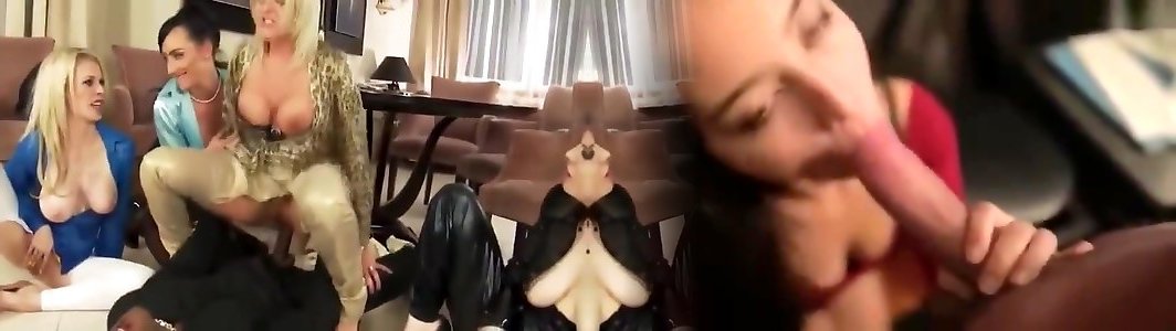 This blonde milf is mad about big dicks and she meets up two brunette friends for an orgy