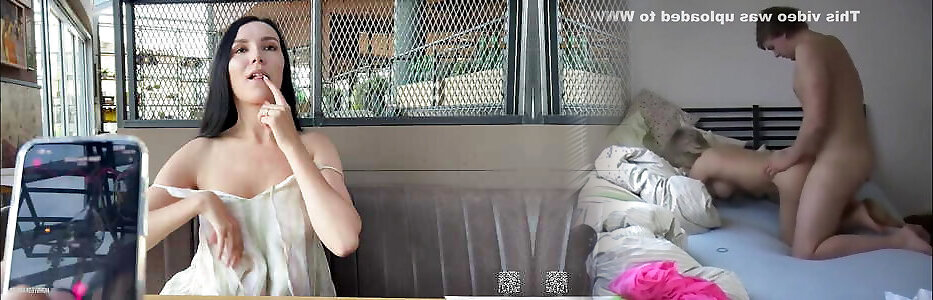 Stepdaughter in panties without bra masturbates fingers pussy. Naked stepdad came into bedroom. Family nudists. Naked family