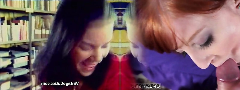 Mature redhead teaches teenage gal in a threesome how to fellate