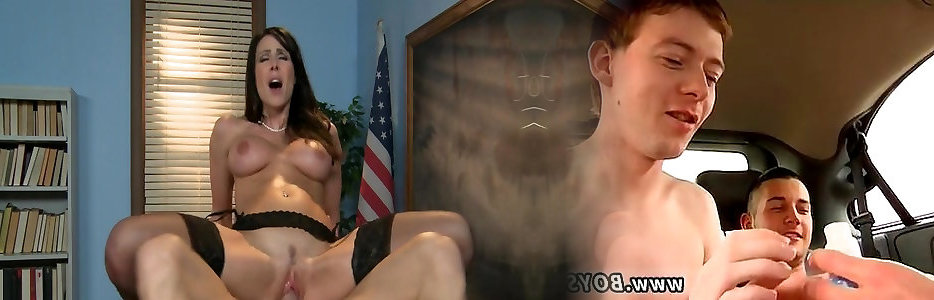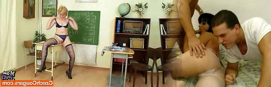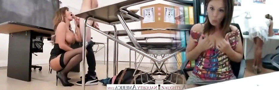 Milf lecturer shows a porn vid in two boy sex porn and plumbs a college girl