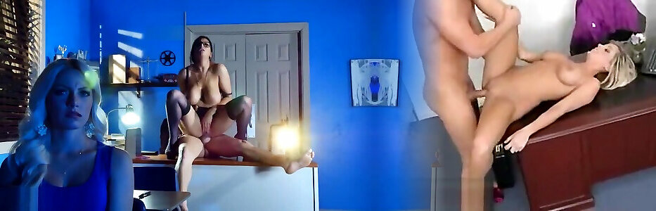 Bosomy towheaded head muddy teenage rails long pipe of her horny Bf on white ir desk