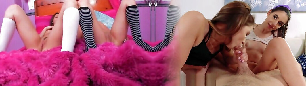 Scorching and youthful lesbie nubiles Teagan & Ivy invite one guy over for 3 way