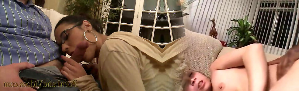 Some lesbian bed fun before a double blowjob to his small dick