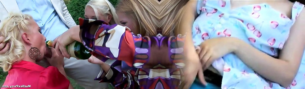 Tipsy kinky nymphos switch from dancing to gobbling twats on the lawn