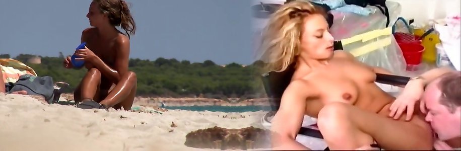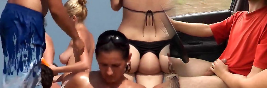 Naturist beach with clothed gentlemen and without bra nymphs