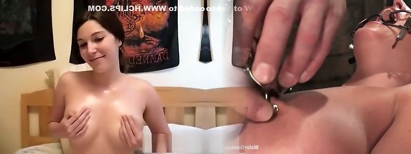 Bare-breasted teenie takes first-timer facials