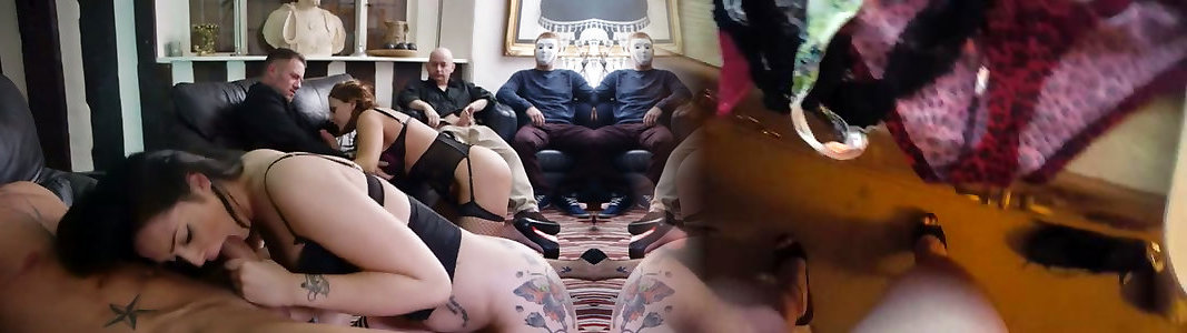 2 lecherous girls in marvelous fishnets and corsets give suck off to one fortunate guy