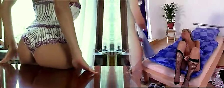 Blondie booty drilled while she wears a harness and nylons