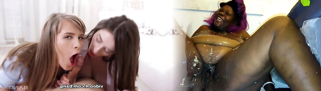 close up Double barrel fellating Nuts to plums touching frot swording