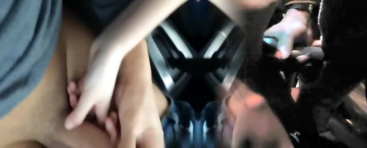 In the parking lot, she is masturbating in the car, two strangers approach me, I open the door and let them touch me
