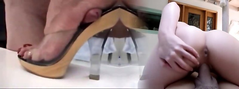 High Heels Footjob and Handjob with Cumming on Feet