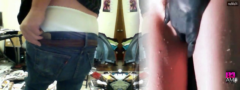 AND SEXY CLOSE-UP CUMSHOT AND MALE ASS WITH JEANS AND SHIRT - MOANING AND UNIQUE HANDJOB WITH A HUGE COCK TO BLOWJOB