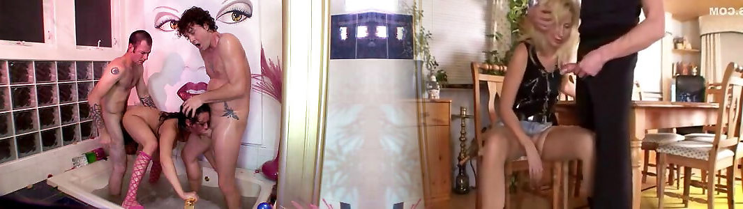 Milf&039;s arse gets torn up gonzo while she blows 2 more boners