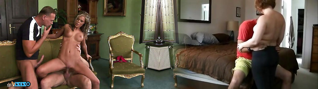 Sumptuous brunette supersluts tear up mom on sleep boys side by side