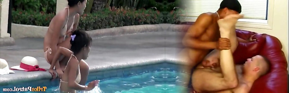 POOL SIDE MMFF Ass-fuck Fuck-a-thon Bang-out WITH 2 Unshaved Pussy Teens