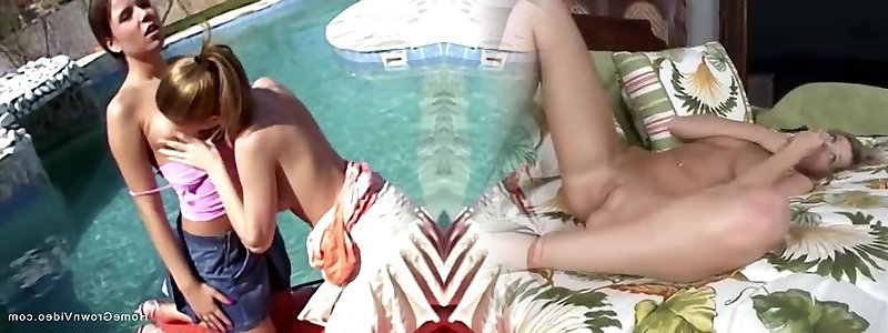 Two super hot youthful lesbos have fun by hot toght pool