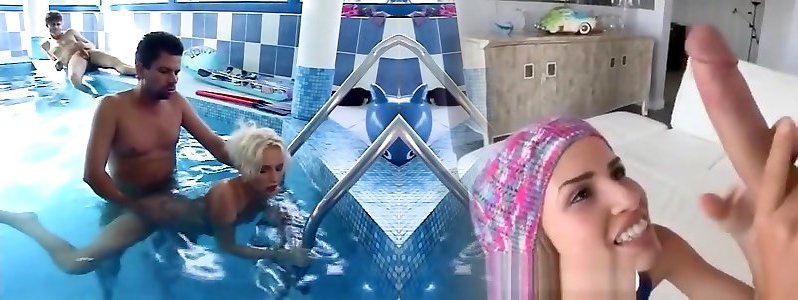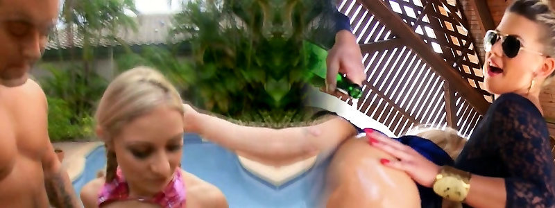 Hot fuckfest session with 2 fabulous adult movie stars right next to swimming pool