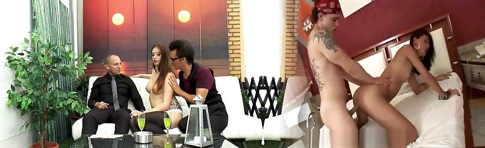 Hot horny tattooed slut gets fucked hard by two older guy