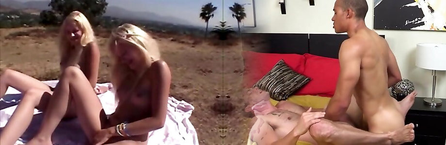 Twin american sisters Threeway after a marriage party in LA