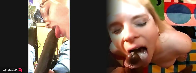 Interracial blonde slut sucks black cock till it cums